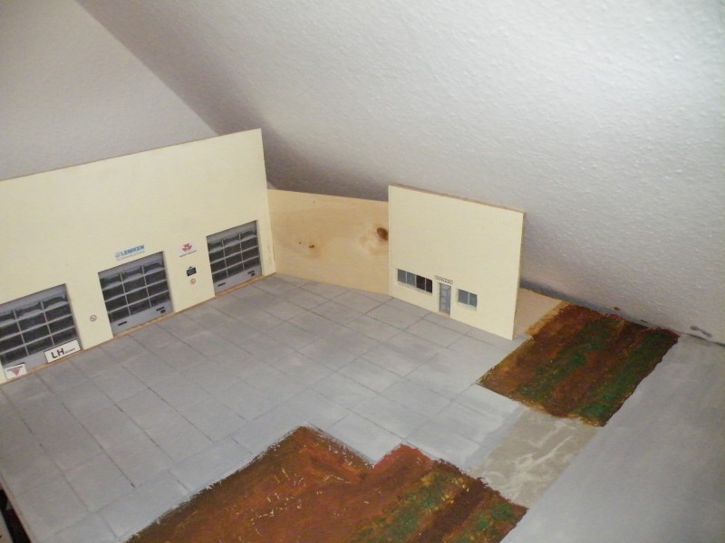 Ich habe mit kaschiertem Styropor einen Fahrdamm aufgebaut.Des weiteren aus dem gleichen Material, Betonplatten für den Hof geschnitten.