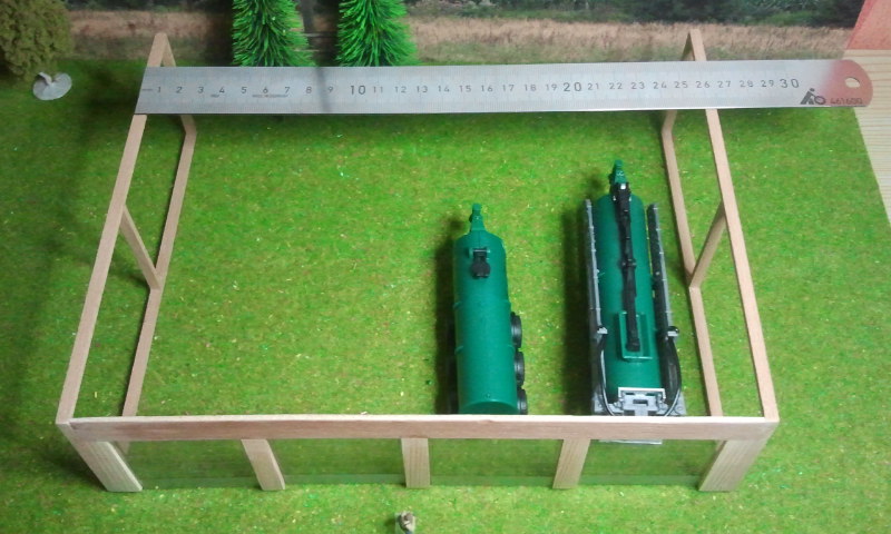 Zu dem Entwurf, die Maschinenhalle/Unterstand plane ich mit 500x220mm ein, diese möchte ich gerne aus Holz fertigen, Anregungen habe ich hier und im Netz gesehen, aber über weitere Anregungen eurerseits würde ich mich auch freuen. Die Werkstatt, das Wohnhaus mit Garagenwerde ich dann anpassen. Die Straße und das Feld und weitere Grünflächen/Bäume usw. sollen dann später dazu kommen.