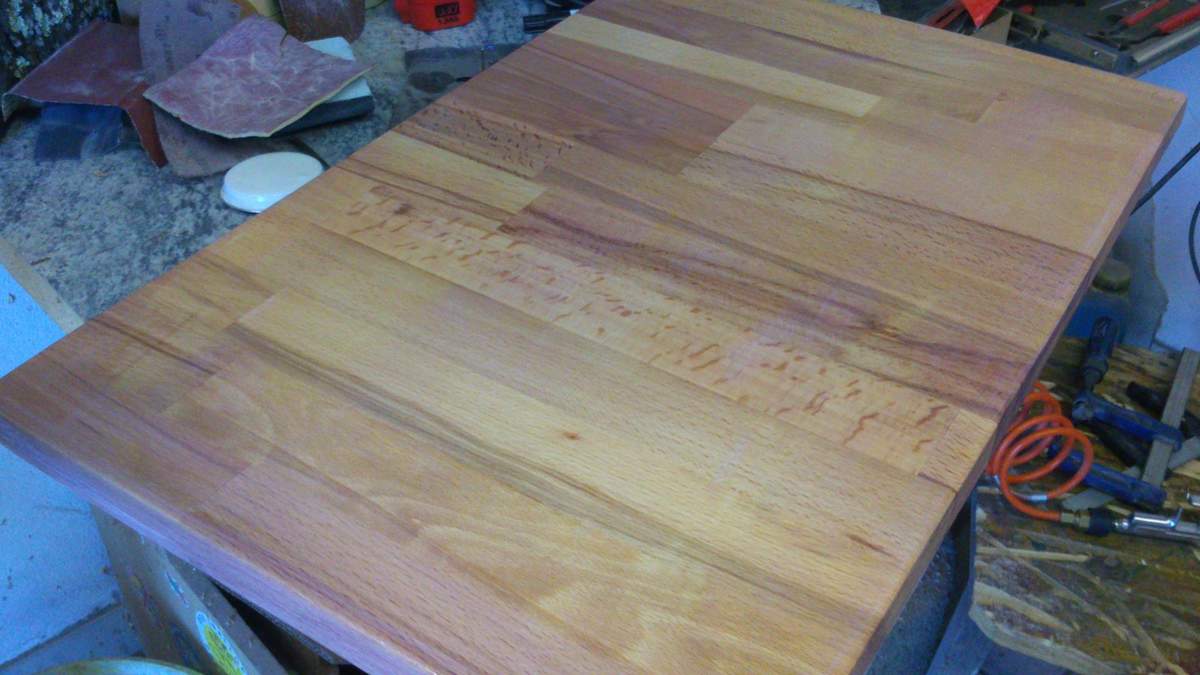 Hi Leute nach 2 Tagen geht es wieder weiter ecken wurden gebrochen die Fläche geschliffen und die erste Schicht Klarlack ist auch schon oben und ist beim Trocknen. ;))))) Hier mal Bilder