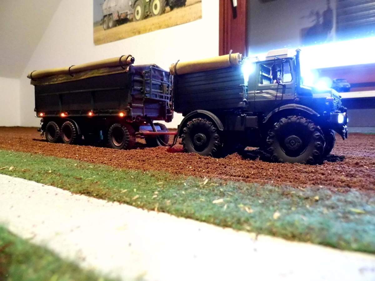 Der Unimog mit seinem 3-Achs-Anhänger ist schon ein richtiges Prachtstück!