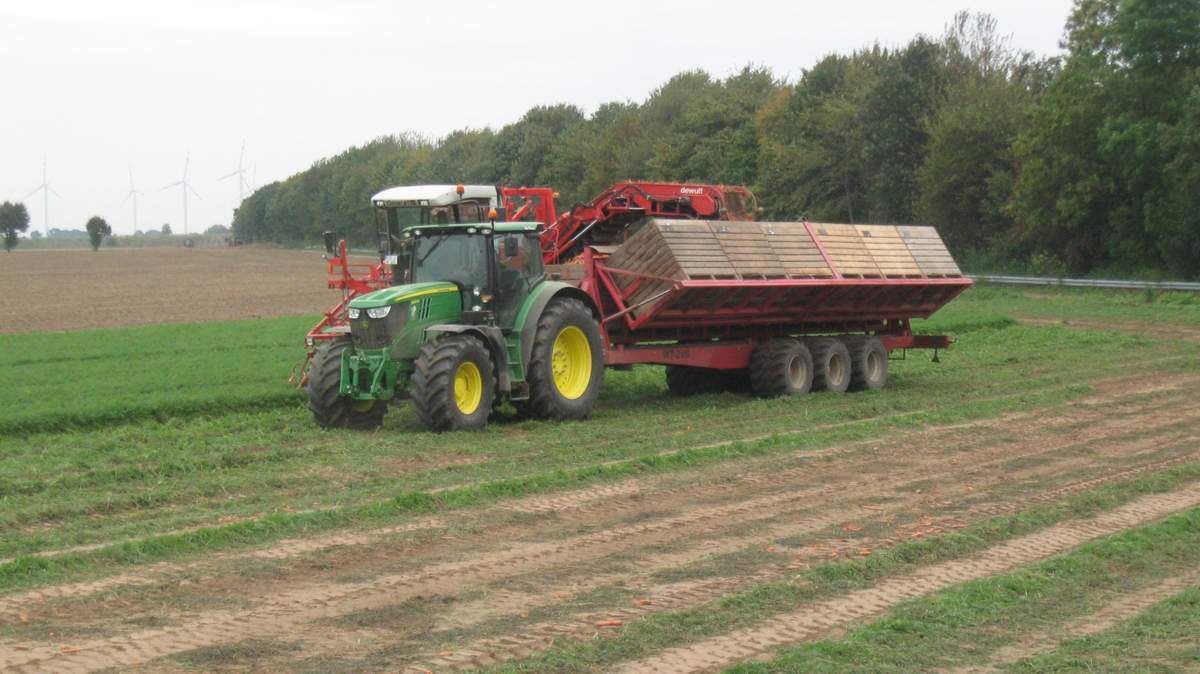 Mein Schlepper war einer von zwei neuen John Deere 6210 R mit einer Vrk 6x2 Kantelkarre.