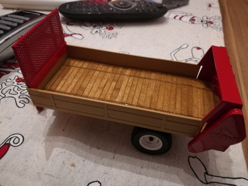 Schön das euch der Streuer gefällt,habe jetzt noch die Ladefläche gebeizt und den kratzboden eingebaut.