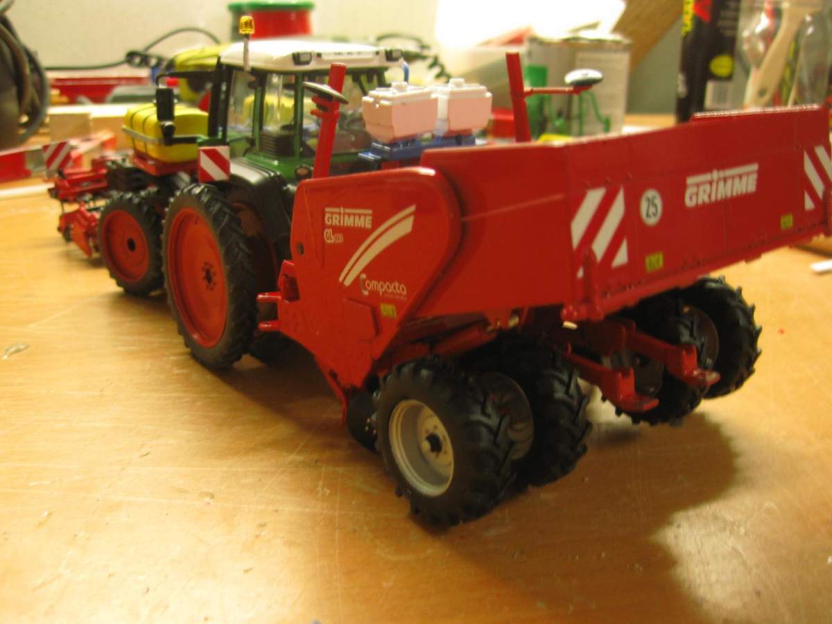 Als Basis diente der Fendt 818 von UH, an dem wurde einiges getan: an der Kabine wurden die Türdichtungen angemalt und die vorderen Scheinwerfer und Blinker weiter nach außen versetzt.