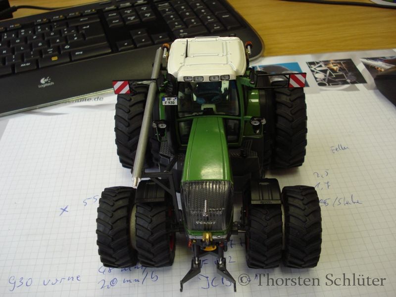 Wollte eigentlich die Siku Valtra Reifen verwenden, aber dann wäre er hinten über vier Meter (125mm) gekommen und dann hätte das mit der Drille nicht mehr gepasst.