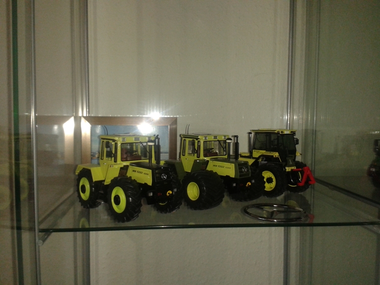 wie Ihr gleich sehen werdet bin ich in 1:1 und in 1:32 ein großer Trac Fan. Ich sammel grundsätzlich Modelle von Herstellern die wir auch in der 1:1 Landwirtschaft im Einsatz haben also MB trac, Unimog, Deutz und Case IH. Schlüter, JCB und Xerion sind ja ebenfalls Trac's und passen somit sehr gut in meine Sammlung. Einige Modelle hab ich selber umgebaut , einige aber auch schon umgebaut gekauft. Leider steht bei mir ein Umzug an so dass ich von den Bildern (Qualität....) und den Modellen nicht ganz auf dem aktuellen Stand bin. Freu mich auf eure Kommentare.