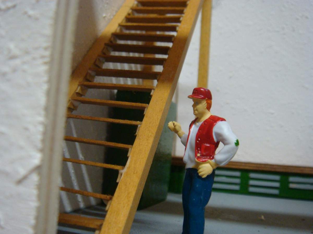 Ja ich muß euch recht geben, die Treppenwangen sind ein bißchen zu dick, aber leider habe ich sie schon reingeklebt. Habe es aber jetzt so gemacht, dass ich das Treppengeländer draufgeklebt habe. Dadurch wirkt es nicht mehr so stark!