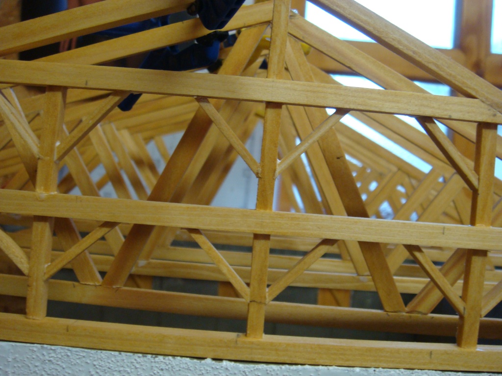 Die Dachkonstruktion sieht sehr gut aus aber soll der erste Binder so bleiben, der passt an den Enden nicht ganz zu den anderen