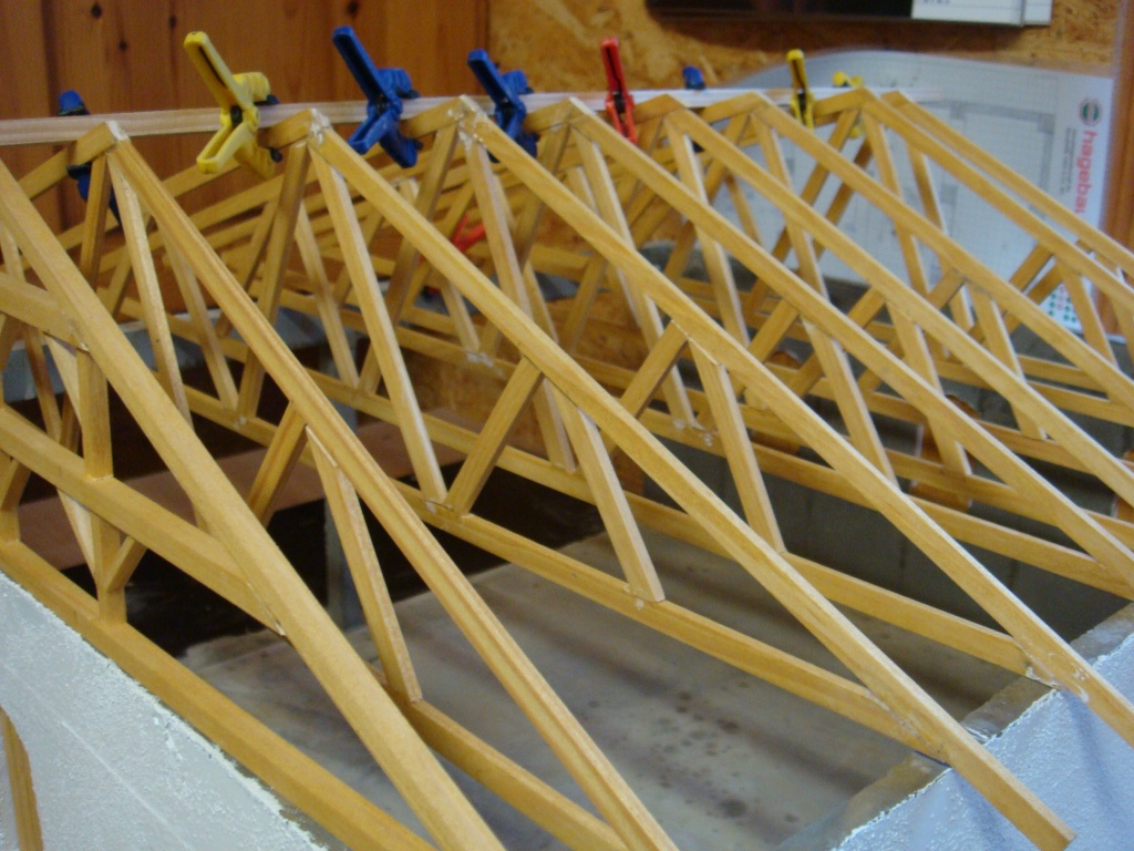 Die Dachkonstruktion sieht sehr gut aus aber soll der erste Binder so bleiben, der passt an den Enden nicht ganz zu den anderen