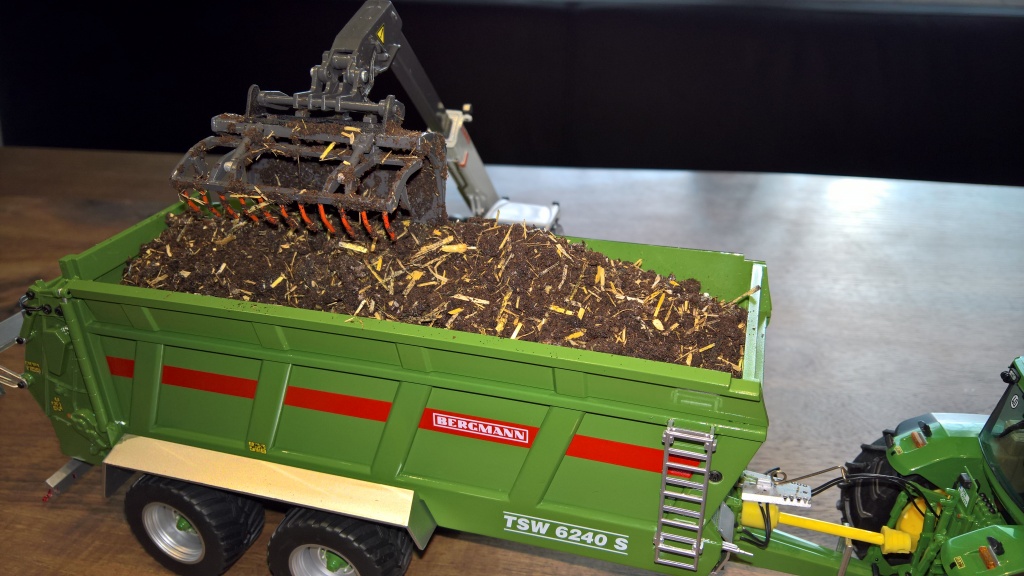 Den John Deere und den Streuer habe ich mir an der Agritechnica gekauft. Am gestrigen verregneten Sonntag versuchte ich mich erstmals an Ladegut und an einer Verschmutzung der Lader Zange. In einem nächsten Schritt soll der Streuer noch verschmutzt werden. Das Rapid Einachser Model steht schon länger in der Vitrine, gehört als Meilenstein der Schweizer Landtechnik in jede Schweizer Model Sammlung.