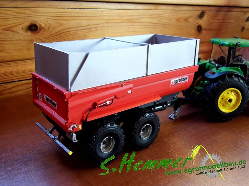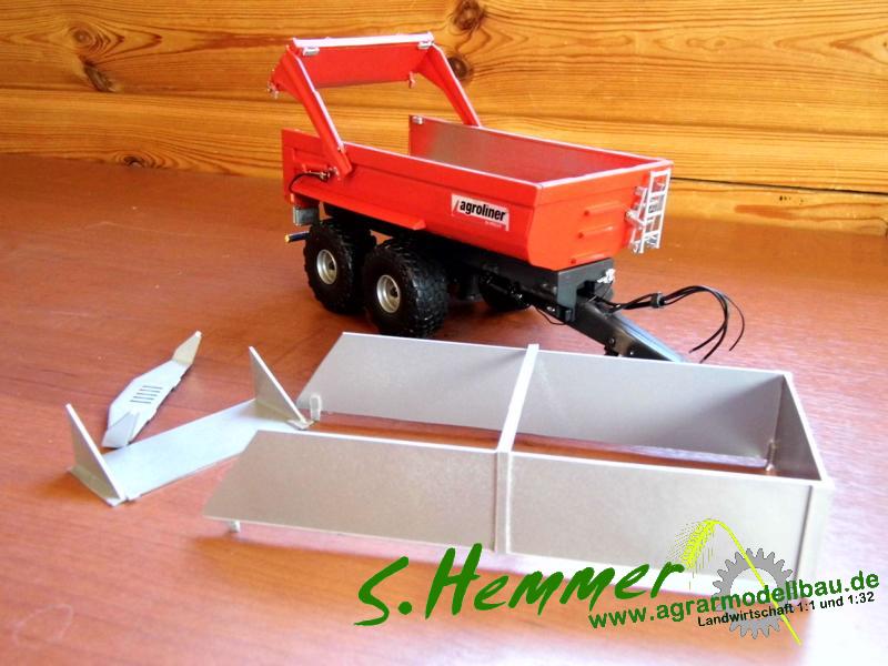dazu wurde ein joskin umgebaut da ich mit der marke nichts anfangen konnte. die muldenform passt sehr gut zum agroliner modell. die front vorne wurde verändert und auch an der heckklappe wurden streben weggenommen die bei diesem modell nicht vorhanden sind.
