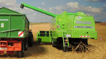 Sehr schön Hans müssen nur noch andere Reifen drauf. Ich hab bei meinem deutz Drescher die Breitreifen von den alten Siku Schleppern drauf das passt ganz gut.