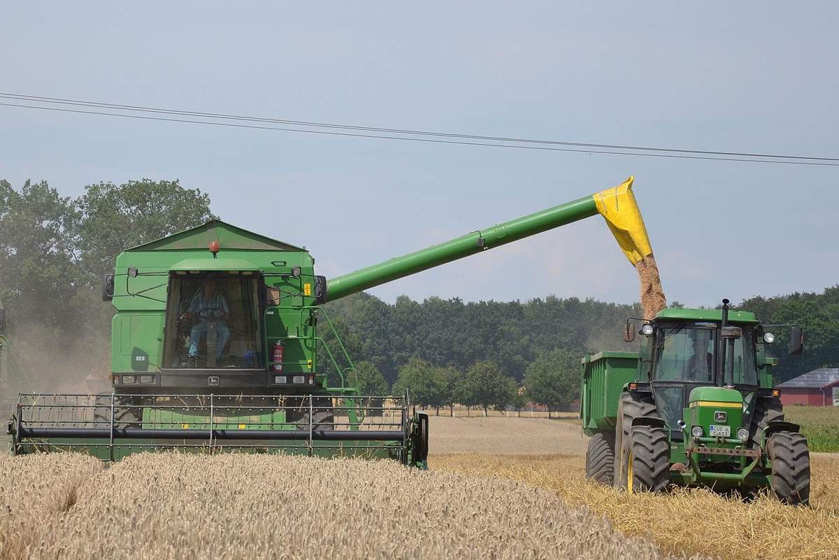 Meiner Meinung ist der 820 ein sehr schöner TreckerDer 924er kam deutlich besser mit der Presse zurecht wie der 820Triticale derschen mit Johnny PowerNach 2mal Abbunkern war der Kipper dann vollHoffe die Bilder gefallen euch:) -