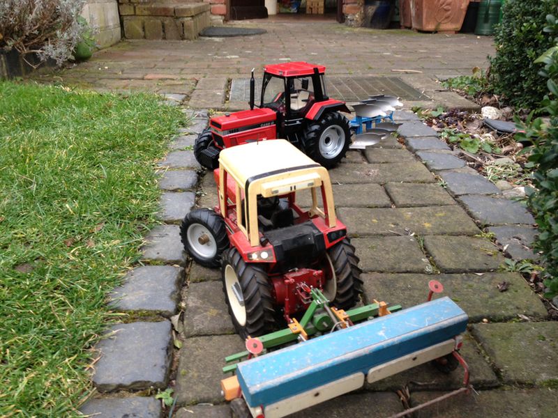 Die alten IHC sind Umbauten auf Basis von Ertel Modellen. Die Maschinen und Anhänger sind Eigenbauten aus Metall. Zu den Modellen gab es auch immer einen passenden Hof im Garten.