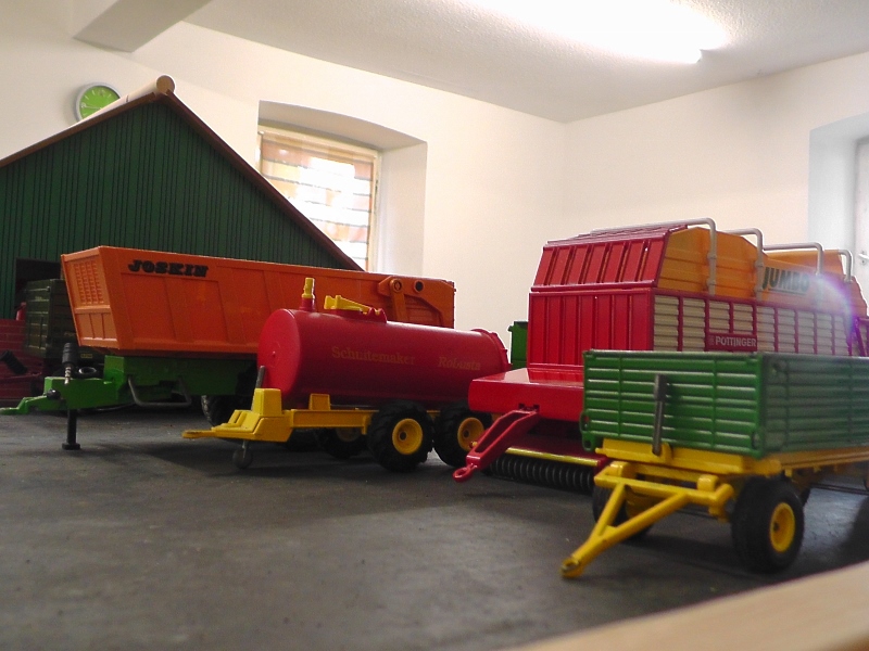 Zu finden sind auf dem Diorama ein Acker, eine Wiese, eine Straße, ein Holzplatz und natürlich ein Hof mit Kuhstall, Fahrsilo, Bodensilo und Unterstand.