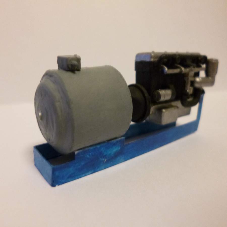 Hier ein Anfang einer Biogasanlage. Ich wollte nicht mit den üblichen Behältern, Fermentern etc. beginnen, da ich noch im Aufbau vom Diorama bin. Die Idee war einen Container zu bauen, den man nach oben hin wegnehmen kann (oder mit seitlicher Öffnung) dass man auch ins innere schauen kann. Angefangen habe ich mit dem Herzstück dessen Container, dem Motor und dem Generator.