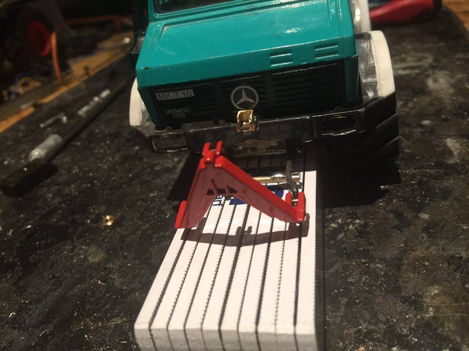 Verbaut ist schon der Allrad Antrieb und eine Voll gefederte Vorderachse. So das er leicht einfedert wenn er das Vordere Anbaugerät anhebt. Das habe ich mir bei einem Modellbau kollegen abgeschaut dort fand ich es ein Hammer Detail. -