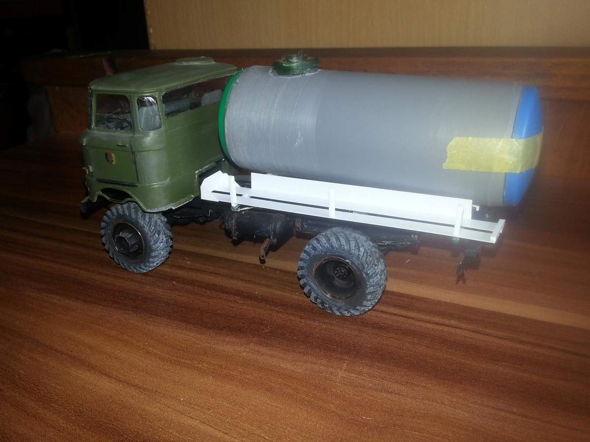 Hallo hier mal ein kleiner Baubericht vom IFA W50 Güllebomber in 1:35 . Als basis diente mein NVA W50 der jetzt wieder als Zivilfahrzeug Rehabilitiert wird. Das Fass war ein Abflussrohr mit Endstücken vom Magneten.
