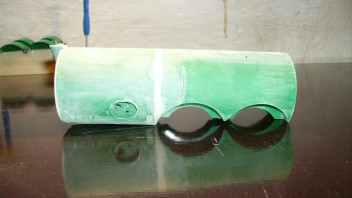 Das Fass wurde geklebt und verspachtelt