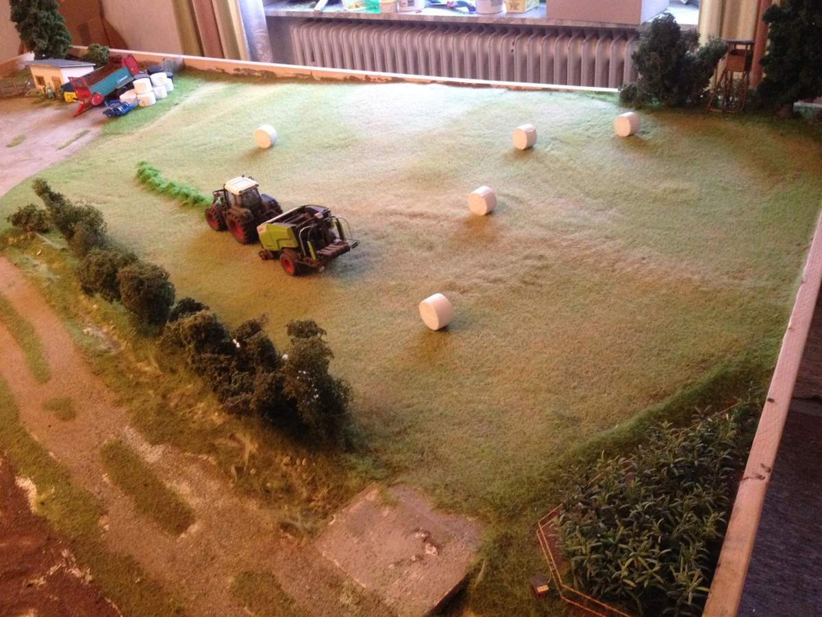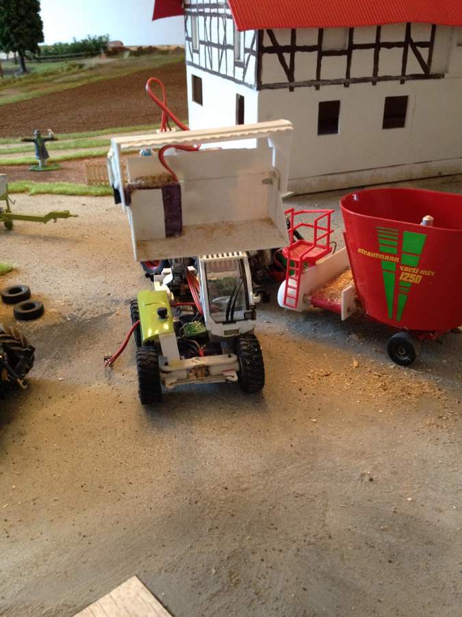 Hallo Forum Ich möchte euch nach langer Zeit mal wieder den Aktuellen Stand von meinem Dio zeigen.Als erstes gab es mal zwei neue fahrbare Untersätze und damit die nicht im freien stehen hab ich mal ein Carport gebastelt.Dann habe ich in die Ecke hinter den Silos einen Hühnerstall gebaut.An der gegenüberliegenden Ecke vom Dio gab es eine kleine Böschung.Auf dem Hof gab es ein neues Gebäude.mit FuttersiloDer Stall hat ein Teil des Daches bekommen.Da ich in nächster zeit auch einige Grünland Geräte auf rc umbauen will habe ich ein teil des dios zur wiese umfunktioniert diese ist absichtlich so hell und kurz weil sie wie frisch gemäht aussehen soll.Die Hofeinfahrt wurde auch nochmal überarbeitet.Dafür habe ich auch meinen ersten Baum/Busch selbst gebaut.Und neben den ganzen Umbaumaßnahmen ging der betrieb natürlich weiter.Auf der Agri Modell habe ich mir dann noch einen Siloverteiler von Tim gegönnt dieser wurde natürlich auch sofort am selben Tag noch umgebaut.Und zum Schluss nochmal ein paar Bilder zur Übersicht.So das war es erstmal wieder freue mich auf eure Kommentare.