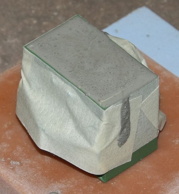 nachdem durch zwei Ausstellungen in den letzten Wochen bei mir der Schwerpunkt bei der Gartenbahn im Maßstab 1:22,5 lag, hab ich mich gestern mal über ein Wunschgewicht hergemacht. Das Vorbildgewicht ist aus Beton mit Blechmantel, LxBxH ca. 1200x700x1000mm, und dürfte reichlich zwei Tonnen wiegen.