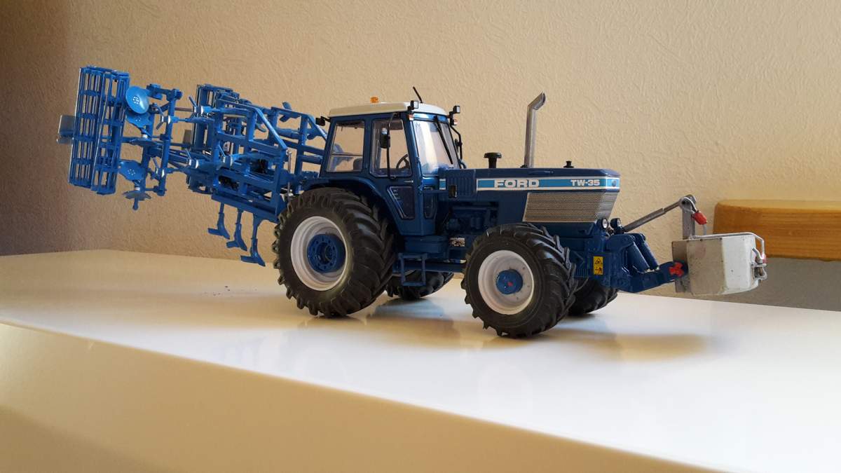 Habe einen defekten Ford TW35 Gen.I von UH bekommen. Es wurde bereits ein FKH eines Ford implantiert. Der Radstand stimmt sowieso nicht, so dass ich gleich die Hinterachse rausgeschnitten habe und sie ein paar Milimeter nach hinten setzen werde um auch die dicken Pellen unterzubringen. Das Heckhubwerk hat Spielzeugcharakter und fliegt raus. Ein Kraftheber von einem Weise Fendt 515 soll das Ganze komplettieren. Felgen von verschiedenen Weise Fendts mit Verbreiterung und ein paar passende Pellen drauf. Den krieg ich schon hin.