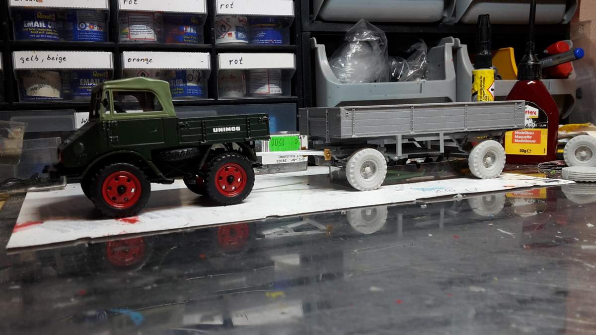 • Neues Projekt, ein Milchkannentransporter auf Basis des Atlas Boehringer Unimog mit einem Anhänger sowie Milchkannen von Miniart in 1:35.