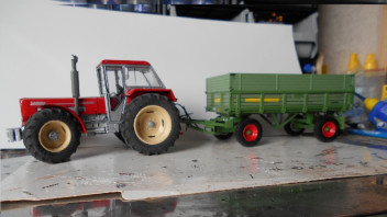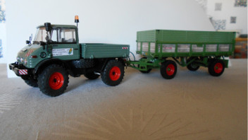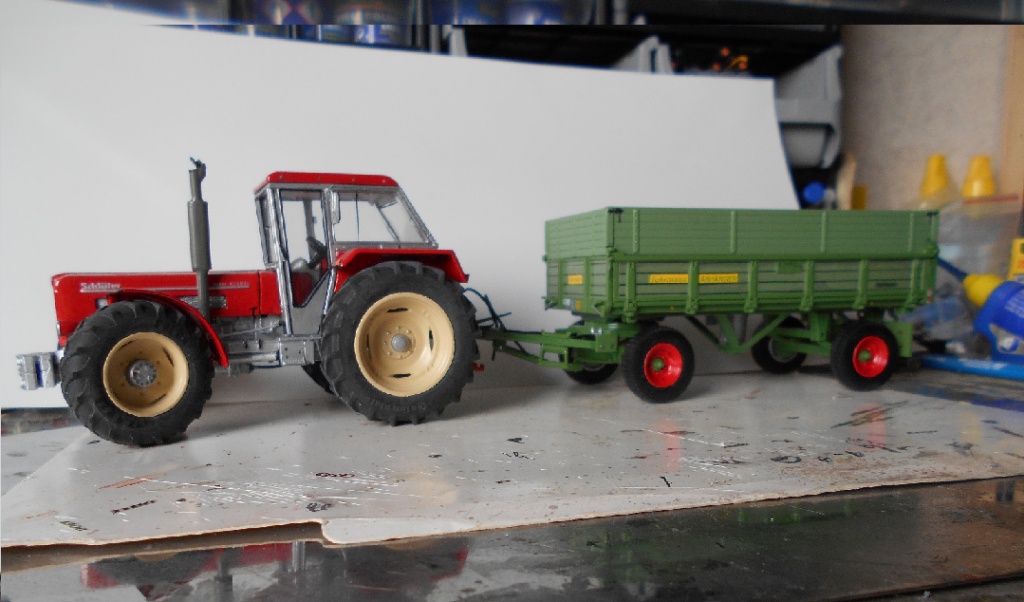 Der Schlüter ist mir etwas zu wuchtig. Ich habe früher an einem Bahnhof gewohnt wo täglich Kunstdünger, Torf, Kohlen, Holz und sonstige Landesprodukte umgeschlagen worden sind und dort solche Gespanne einiger Landwirte zum Einsatz kamen. Der MB Trac 800 MS von Weise fehlt mir noch und ich kann mich auch an einen solchen erinnern, der mit solchen Kombis unterwegs war.