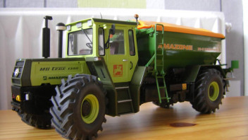 und 80 km/h beim MB Trac 442/443 ist etwas weit hergeholt. Mit den schnellen Achsen, den größten Reifen, erhöhter Motordrehzahl und offenem 8. Gang sind gute 70km/h drin. Aber es gibt schon Spinner die bestimmt auch die 80er Marke knacken....und sich Zahnrädchen für ihr Getriebe Fräsen....höhö.