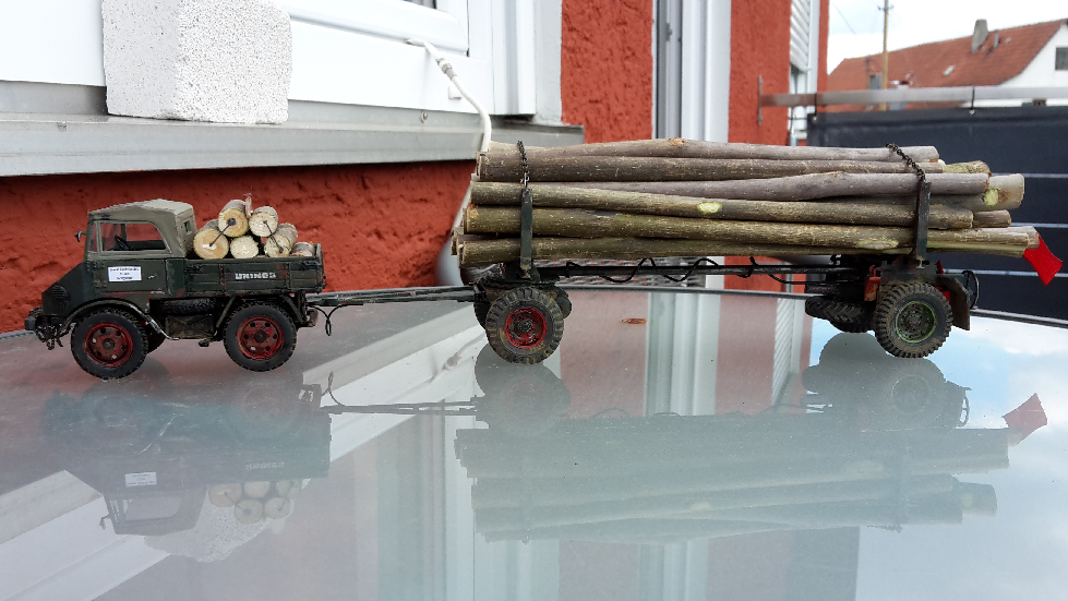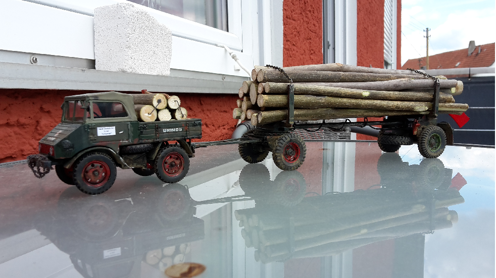 deine letzten Updates - allen voran das Forstgespann - gefallen mir sehr gut. Ein schönes Detail ist auch die Befestigung der kleinen Holzstücke auf dem Unimog. Den Anhänger würde ich - auch aus optischen Gründen - nicht ganz so hoch beladen.;)