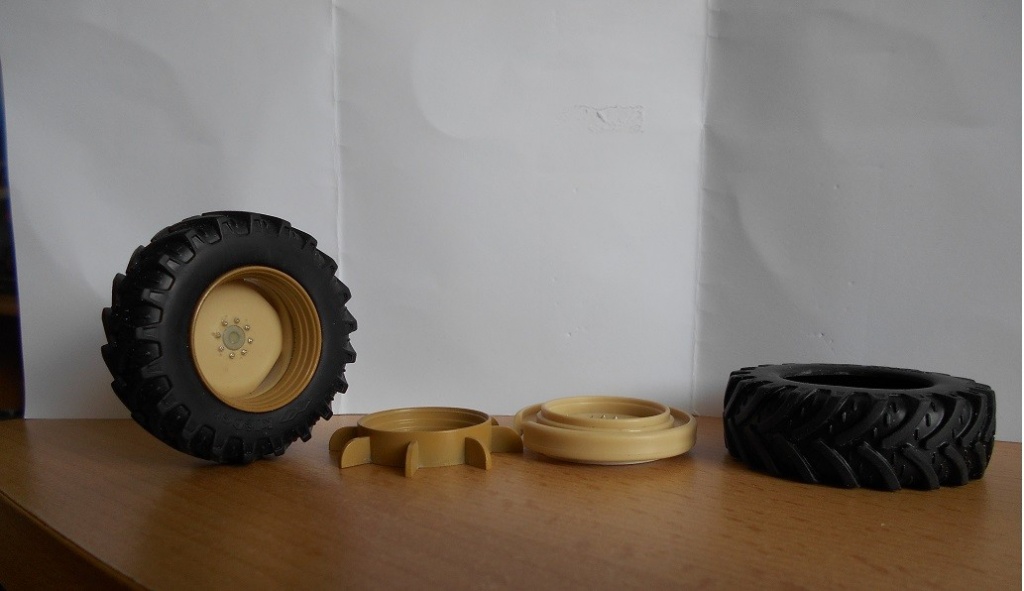 Reifen Weise Toys Super Trac, Felge Siku Schlüter 1250 und ein Felgenring eines Weise ST. An der Siku Felge wird der vordere Rand noch weggeschliffen und hinten noch ein weiteres Stück Rand der Weise Felge eingesetzt, so dass die ET etwas mittiger ist.