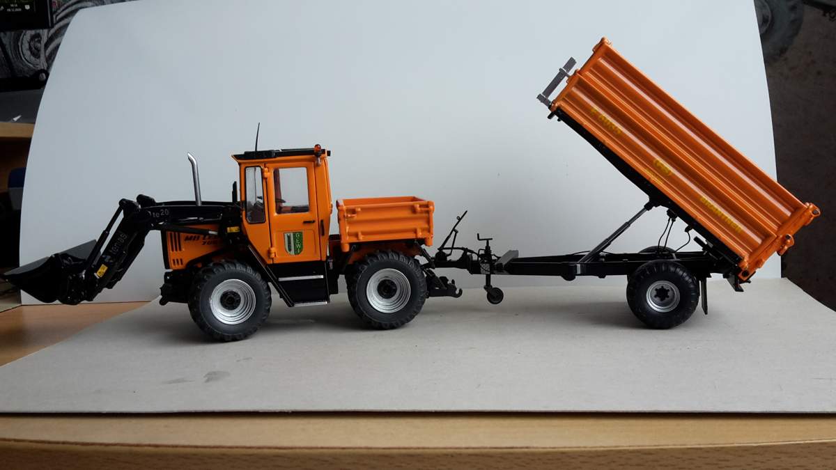 Der Anhänger hat silberne Felgen. Wäre eine Option. Räder sind vom Rolland BH100. Erst habe ich die originalen Räder vom Trac probiert. Auf alten Unimoganhängern sieht man sowas öfter. Gefiel mir aber nicht.