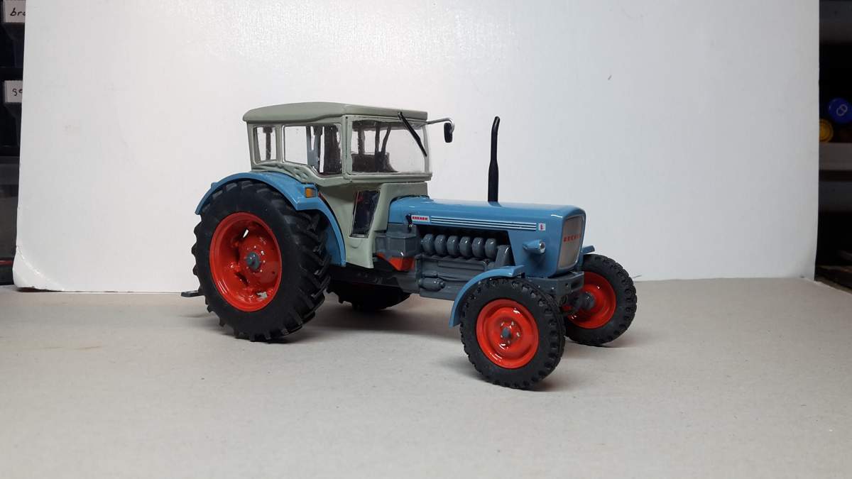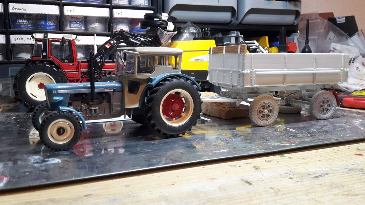Räder vom Fiat und IHC sowie eine Neulackierung des Verdecks und des Rumpfes ergeben ein tolles Modell. Ein Anhänger ist auch in Arbeit.