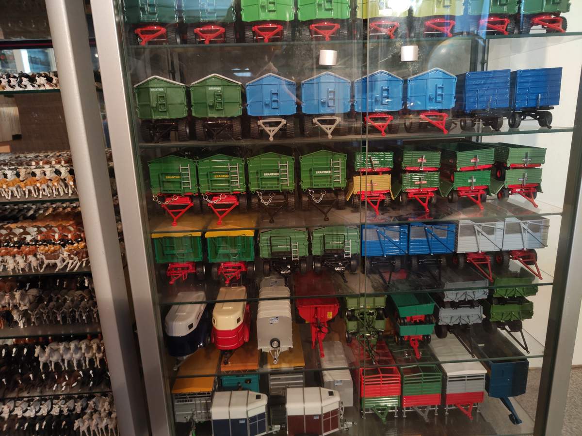 Dazu kommen noch 35 kleinere Züge ( je 1 ROS Krone, 1 Britains IB, 5 Siku Klassischer Anhänger, 3 Siku Silage-Anhänger, 1 Siku Ballenanhänger, 9 Siku Rübenanhänger, 15 Siku Zweiachsanhänger mit und ohne Ballengitter) in den Farben von Bergmann, Bruns, Diedam, Mengele, Strautmann, Krone, Welger, Grümer und Sieversdorfer.