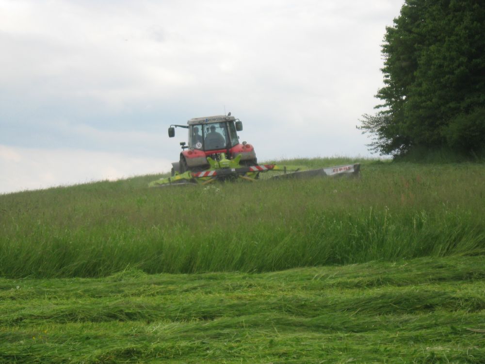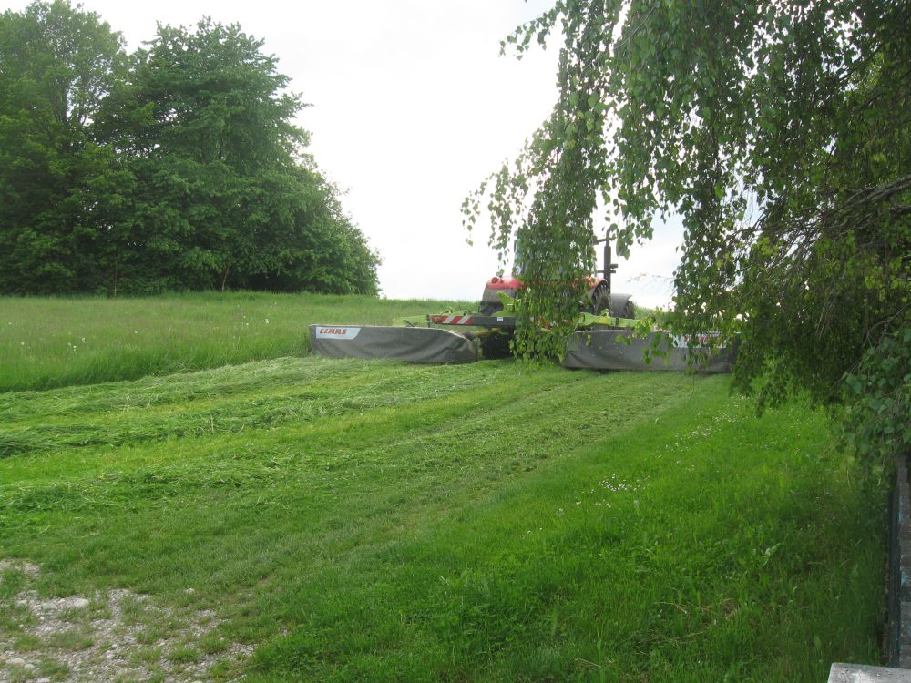 Diese ersten Fotos stammen vom ersten Schnitt 2014 direkt vor meiner Haustür und da hatte ich gleich mal das Glück, eine (für uns in der Gegend) Seltenheit zu sehen, den Krone Big M