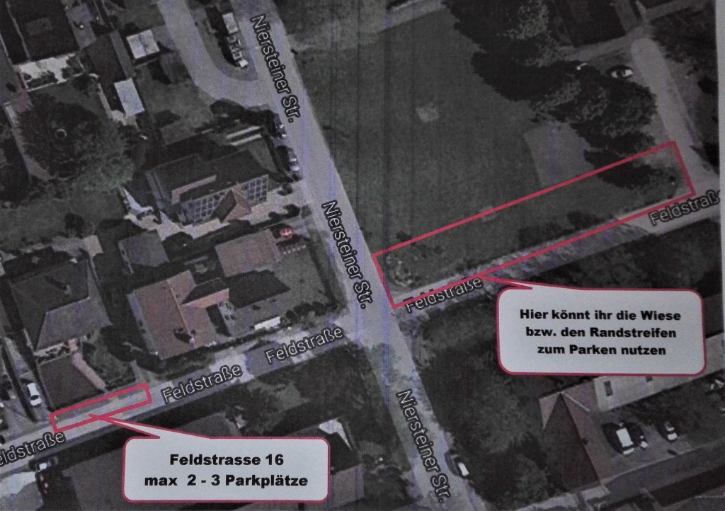 Ich Bitte euch, auf dem Bild gezeigte Wiese bzw. Randstreifen könnt ihr Gebührenfrei und Zeitlos zum parken nutzen und bis zu mir sind es keine 50 m Fußweg.;)