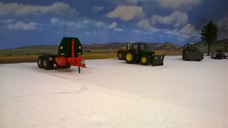 nachdem wir 2013 angefangen haben unser Nest zu bauen, ist nun endlich meine "Ecke" fertig. Der Ausgebaute Dachboden hat 50m² und soll meine Modelle, eine Werkbank und ein Diorama bevorraten. Das Dio ist jetzt erstmal 4m² groß. Es soll ein Lohnunternehmen ein Wohnhaus und Felder zeigen.