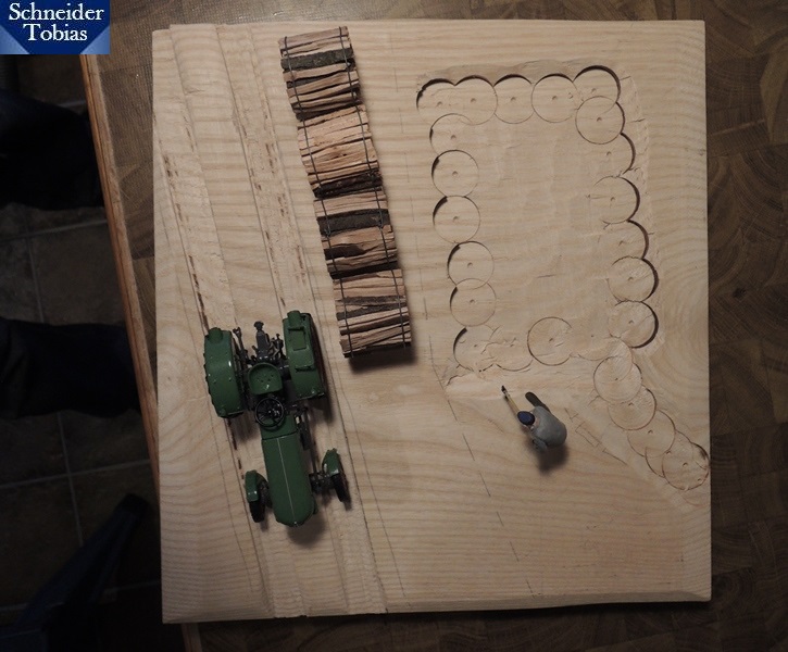Von wegen Schlosser! Das hat Opa damals alles selbst geschweißt und angebaut - und das hält. Wie gesagt, in echt sind die Befestigungen anders, aber - da ich zwischen beiden Tennenbrücken wechseln will - brauchte ich eine Alternative.