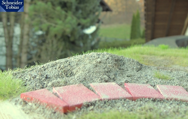 Die Erde ist schon etwas grob, wobei das auf den Bilder vielleicht auch unnatürlich stark hervortritt. Ich finde, durch die leicht grobe Erde wirkt es jedoch so, als würde die Erde noch nicht lange dort liegen und man noch einzelne Erdbrocken vom Aushub sehen.