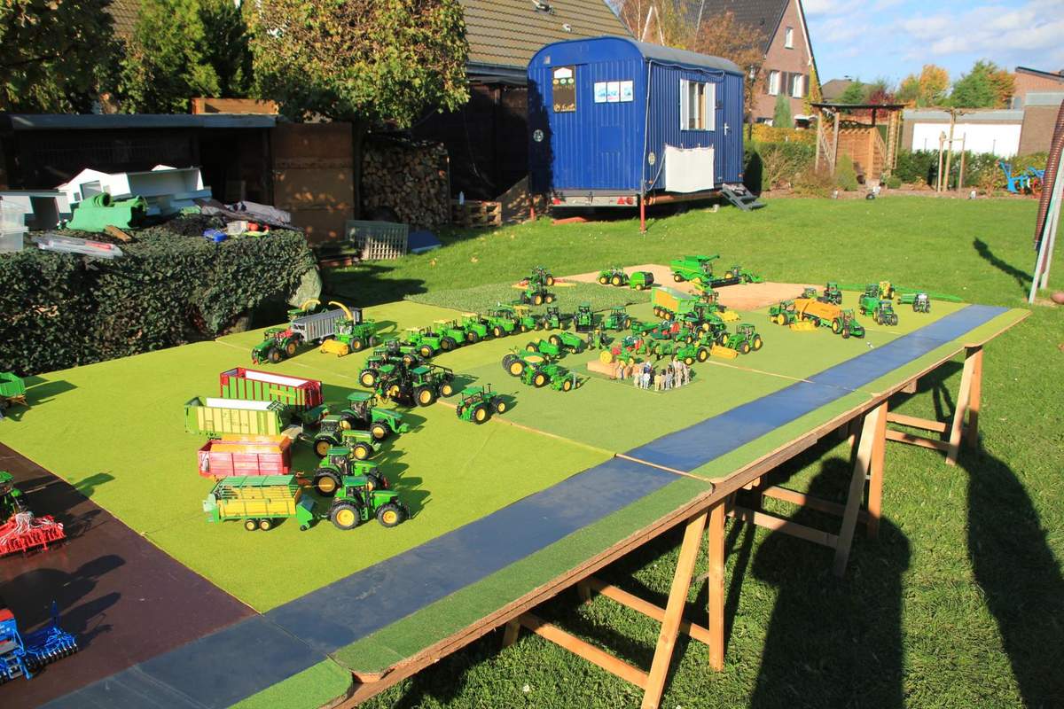 Da mir die John Deere-Ausstellung in Nordhorn unwahrscheinlich gefallen hat, möchte ich auf der diesjährigen Modellbau-Ausstellung bei uns in Gangelt so etwas auch ausstellen. Da es mir aber nicht reicht, einfach nur alle meine Johnys reihenweise aufzustellen, suche ich nach Ideen, wie ich kleine Dioramen auf der mir zur Verfügung gestellten Fläche von 2,5 mal 5,0 Metern machen kann. Weiterhin möchte ich auch einige andere Modelle miteinbeziehen, d.h. ich suche nach Ideen, was einfach zueinander passt, z.B.