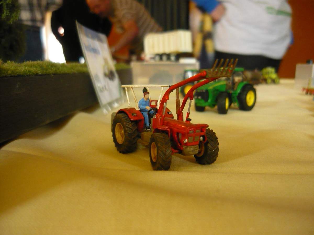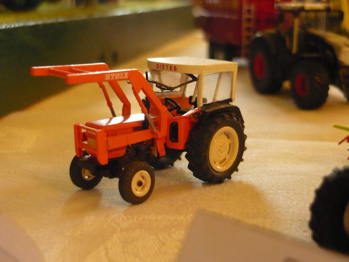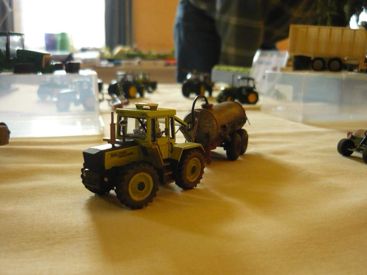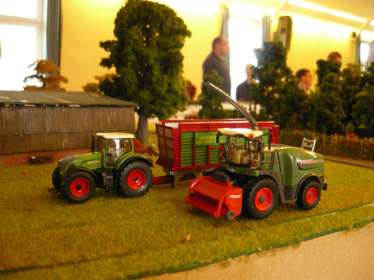 Auf jeden Fall hast Du ein paar meiner Lieblingsmodelle der Ausstellung abgelichtet.Was die Möglichkeiten des Landschaftsbaus und die Verfügbarkeit von nicht landwirtschaftlichem Zubehör angeht, haben wir im Maßstab 1:87 sicher einiges mehr an Material zur Verfügung. Das zeigen die ausgestellten Dioramen sicher deutlich. Auch wenn da der Maßstab 1:32 gerade gewaltig aufholt. Wenn ich allerdings die Vielfalt der landwirtschaftlichen Modelle von 1:32 und 1:87 vergleiche, kommen wir in H0 doch sehr schlecht weg. Wo es in 1:32 von den großen Traktorenherstellern jeweils mehrere aktuelle Modelle zur auswahl gibt, dürfen wir uns in H0 mit einer handvoll Marken mit jeweils einem aktuellen Modell zufrieden geben. Die von Michael fotografierten Modelle zeigen kein Modell wie es im Laden steht. Die auf Michaels Fotos gezeigten Modelle zeigen bis auf wenige Einzelmodelle nur Um- oder Eigenbauten.