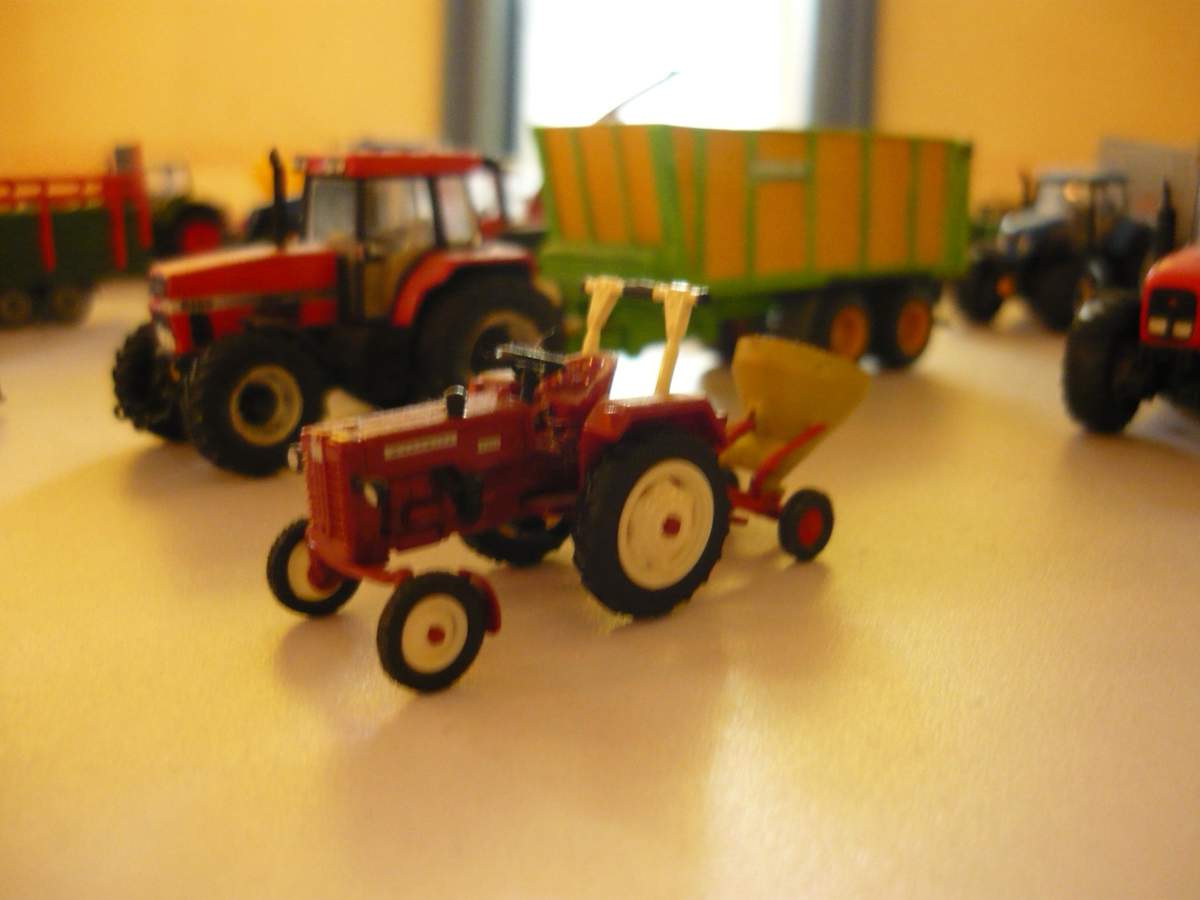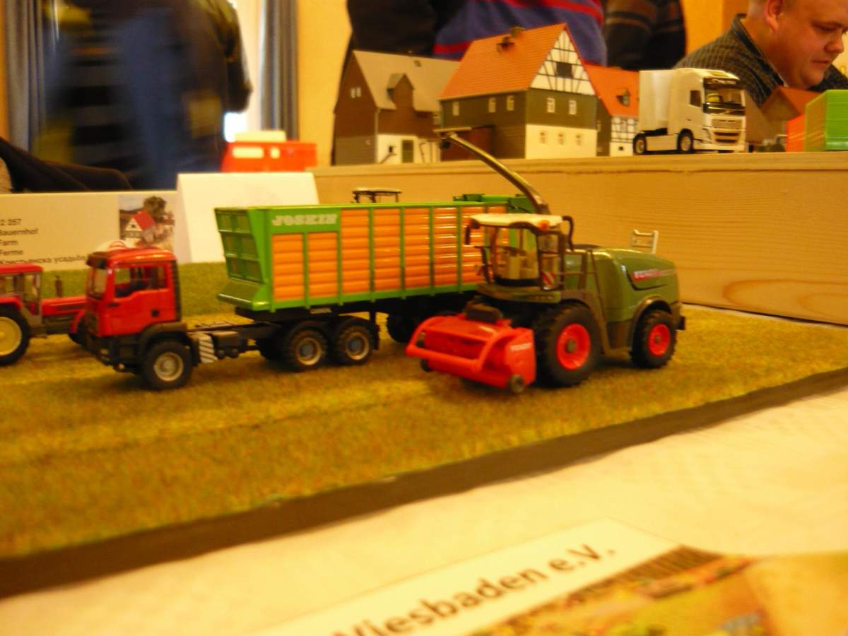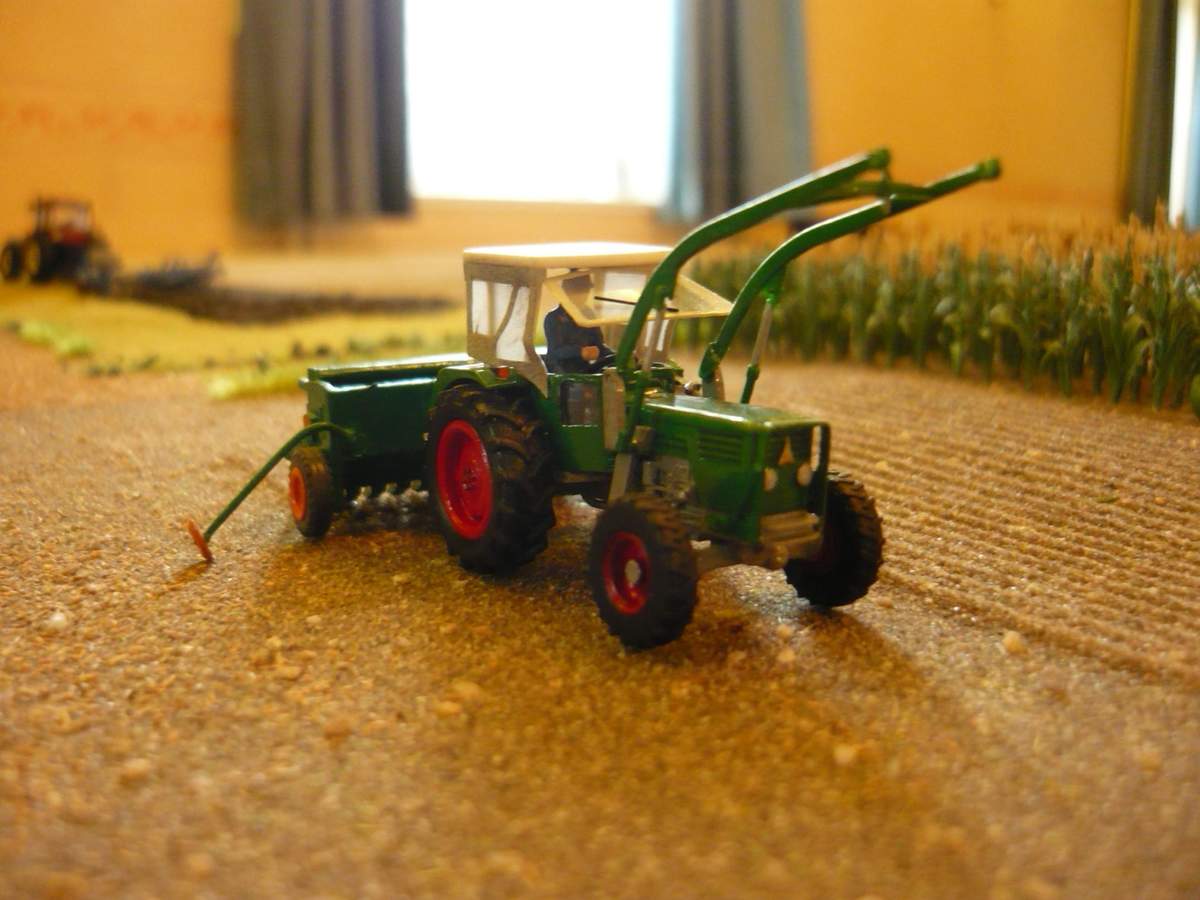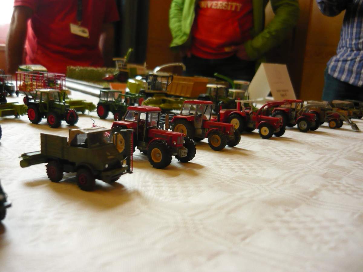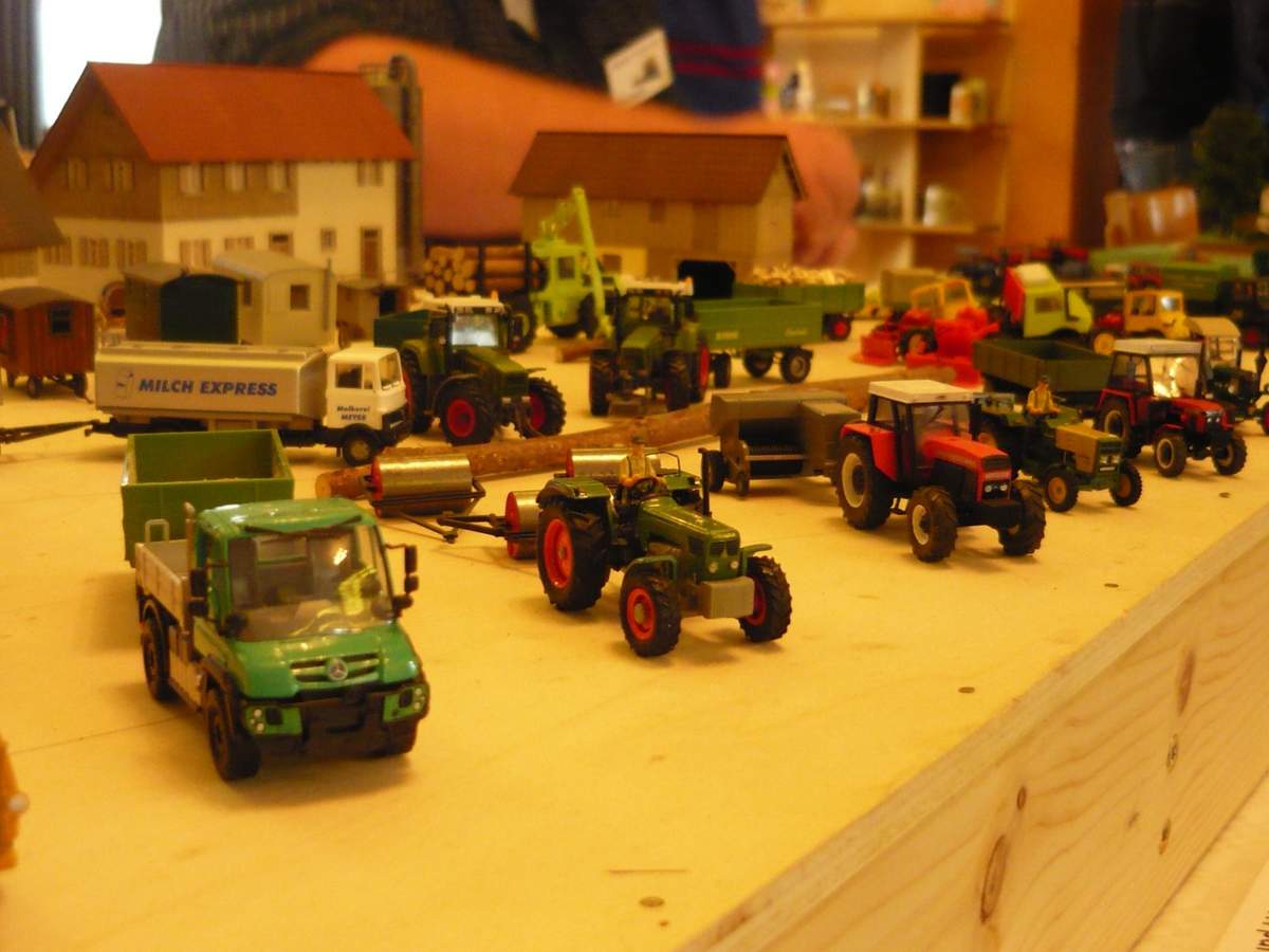 Auf jeden Fall hast Du ein paar meiner Lieblingsmodelle der Ausstellung abgelichtet.Was die Möglichkeiten des Landschaftsbaus und die Verfügbarkeit von nicht landwirtschaftlichem Zubehör angeht, haben wir im Maßstab 1:87 sicher einiges mehr an Material zur Verfügung. Das zeigen die ausgestellten Dioramen sicher deutlich. Auch wenn da der Maßstab 1:32 gerade gewaltig aufholt. Wenn ich allerdings die Vielfalt der landwirtschaftlichen Modelle von 1:32 und 1:87 vergleiche, kommen wir in H0 doch sehr schlecht weg. Wo es in 1:32 von den großen Traktorenherstellern jeweils mehrere aktuelle Modelle zur auswahl gibt, dürfen wir uns in H0 mit einer handvoll Marken mit jeweils einem aktuellen Modell zufrieden geben. Die von Michael fotografierten Modelle zeigen kein Modell wie es im Laden steht. Die auf Michaels Fotos gezeigten Modelle zeigen bis auf wenige Einzelmodelle nur Um- oder Eigenbauten.