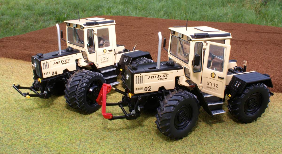 zusätzlich ein MB-trac 1000 Farbe und Beschriftung dito, Nr. auf dem Haubenseitenteil und "Doppelbereifung" wie der 1000er von Profi schon hatte.Auflage Je 399 st.