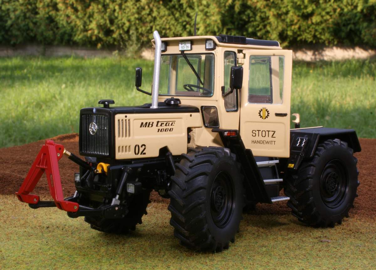 zusätzlich ein MB-trac 1000 Farbe und Beschriftung dito, Nr. auf dem Haubenseitenteil und "Doppelbereifung" wie der 1000er von Profi schon hatte.Auflage Je 399 st.