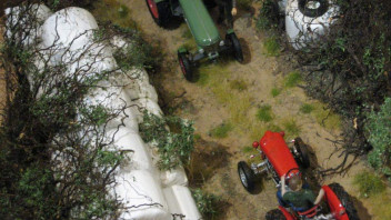Wie zu erwarten springt die Vogel geile Bulldogge vom Traktor runter, um dem Federvieh das Garaus zu machen.