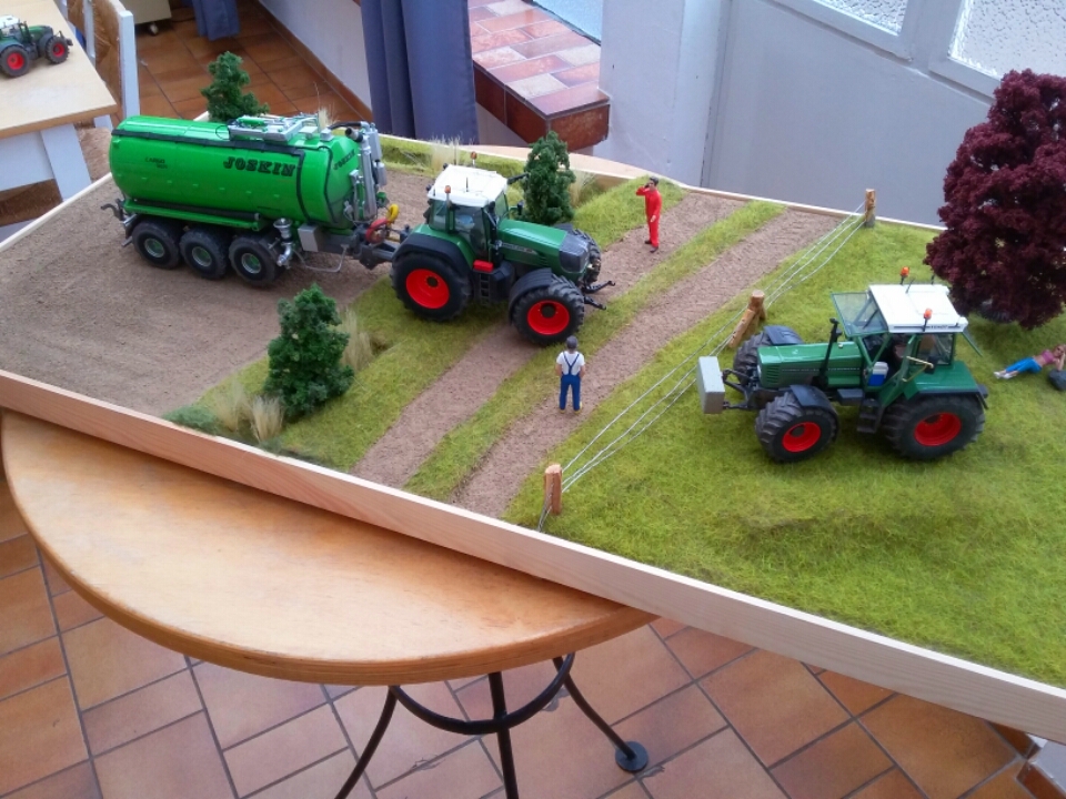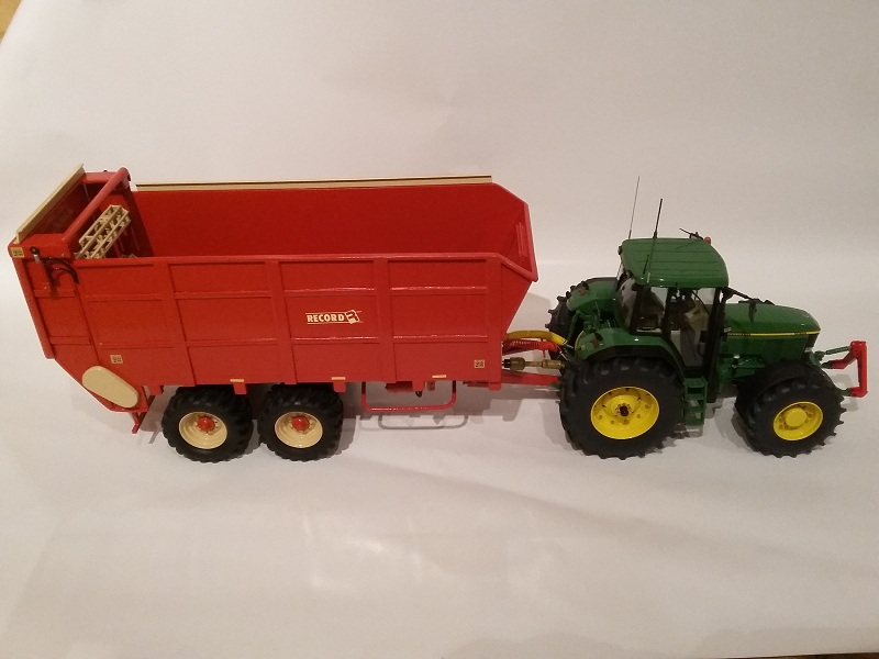 Ein Record Silagewagen, kommt eigentlich aus Belgien, war aber so schlecht verarbeitet, dass ich ihn komplett auseinandergenommen, gespachtelt - geschliffen und neu lackiert habe, jede Menge Details und neue Reifen angebaut habe...war sehr viel Arbeit...aber mit dem Johnny ein schönes Gespann, wie ich finde: