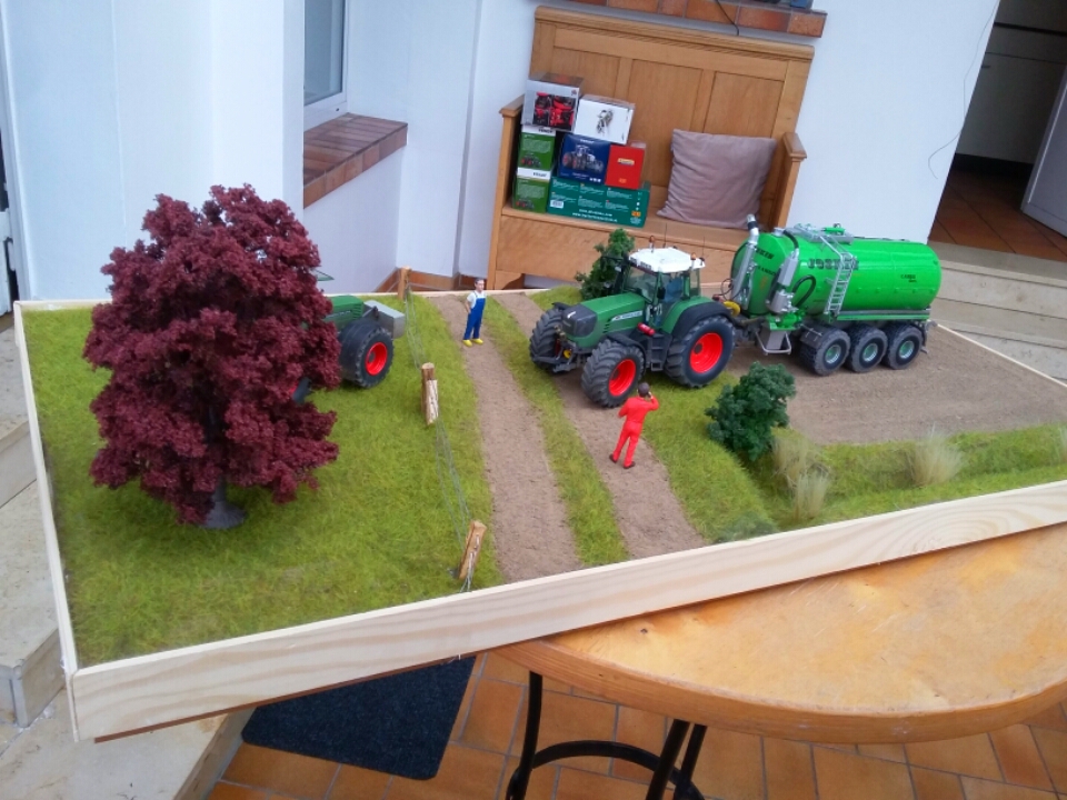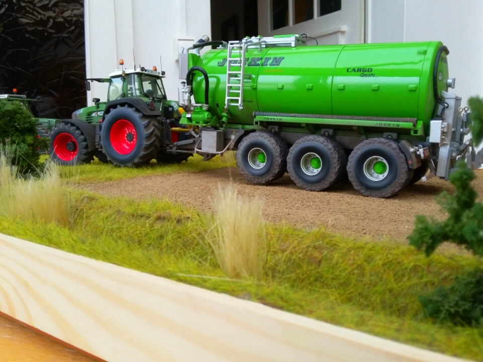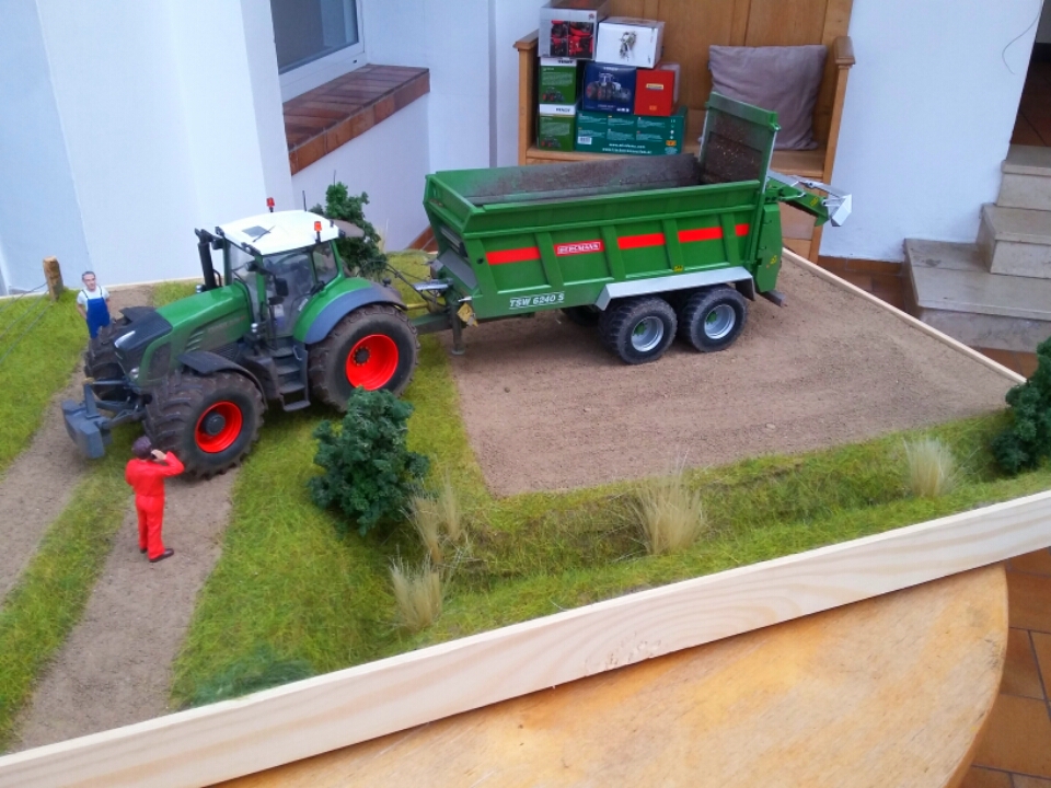 Ein Record Silagewagen, kommt eigentlich aus Belgien, war aber so schlecht verarbeitet, dass ich ihn komplett auseinandergenommen, gespachtelt - geschliffen und neu lackiert habe, jede Menge Details und neue Reifen angebaut habe...war sehr viel Arbeit...aber mit dem Johnny ein schönes Gespann, wie ich finde: