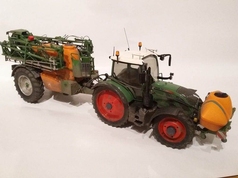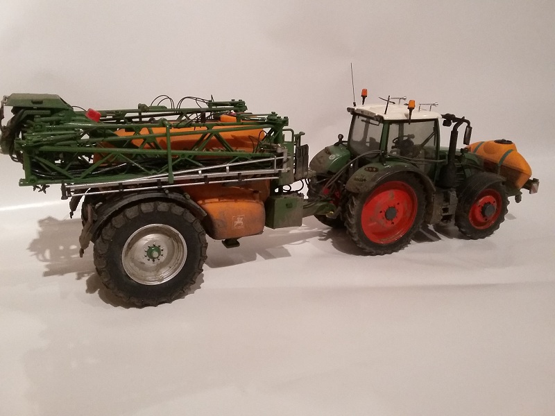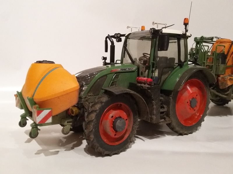 Fendt 724 Umbau mit Amazone Fronttank und gezogener Spritze: