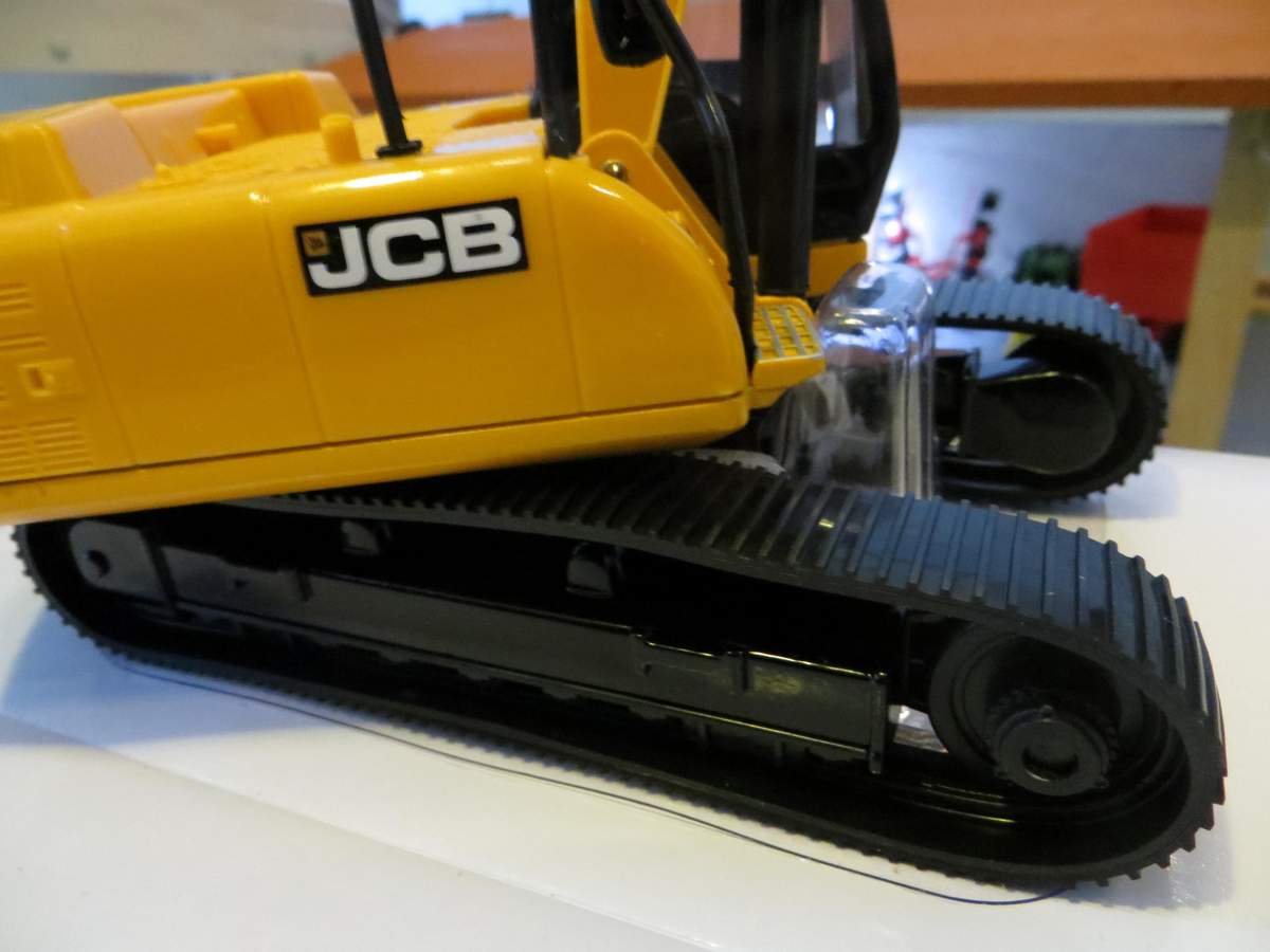 Der Bagger gefällt mir ganz gut und wird auch für Umbauer keine schlechte Basis sein. Das Untergestell besteht mehrheitlich aus Metall, der 360° drehbare Aufbau mit Ausleger mehrheitlich aus Kunststoff. In Verbindung mit den recht schwergängigen "Hydraulikzylindern", die auch Ladung gut halten würden, hat man allerdings einen doch fragilen Eindruck insbesondere des Auslegers.