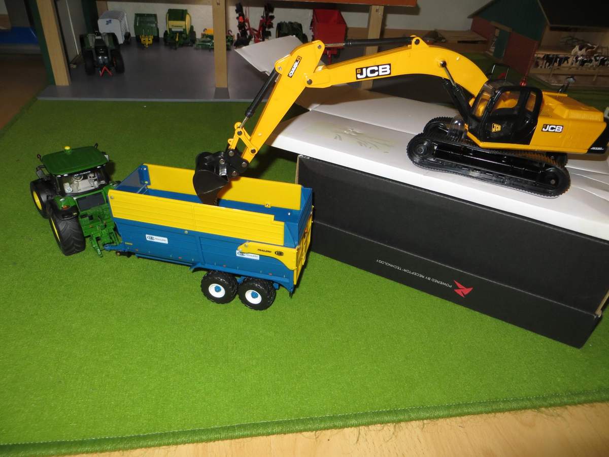 Ansonsten lasse ich mal Bilder sprechen und habe zum Größenvergleich den Kane Silage Anhänger von Britains und den John Deere 8345R von Siku dazu gestellt.