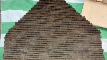 Mensch Helmut, sag nicht du klebst jede Schindel einzeln auf? Das ist ja der pure Wahnsinn.